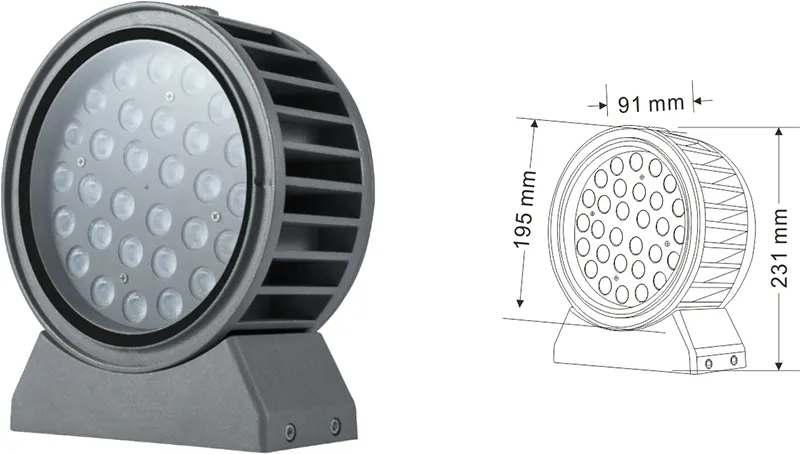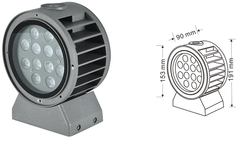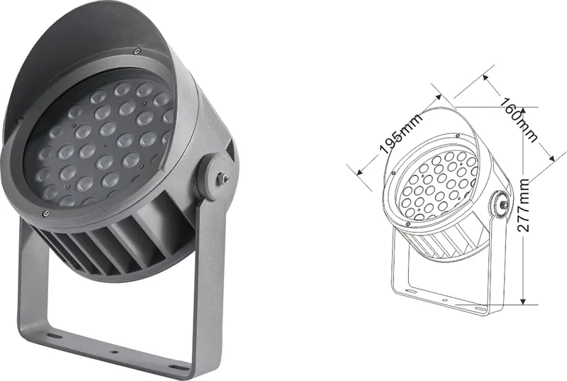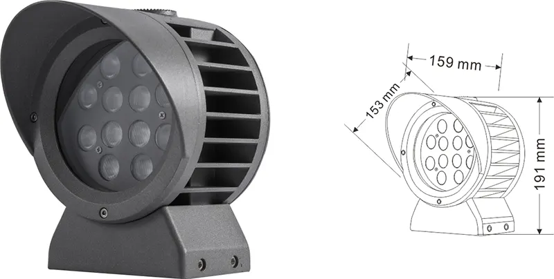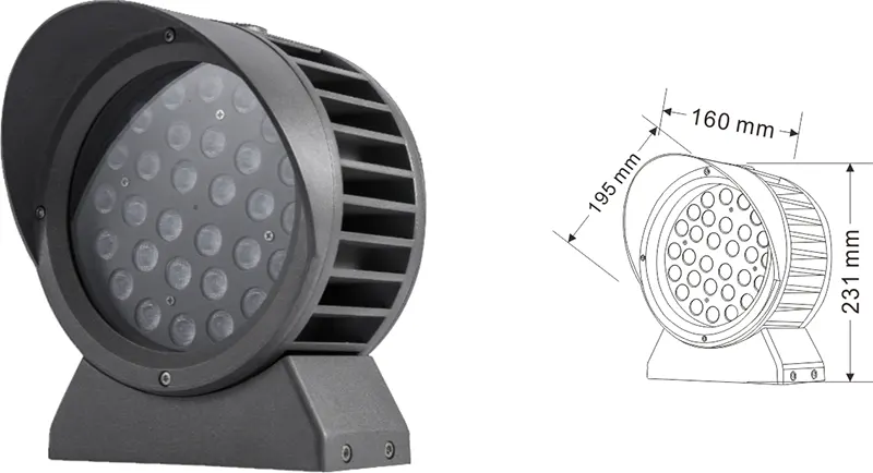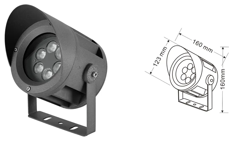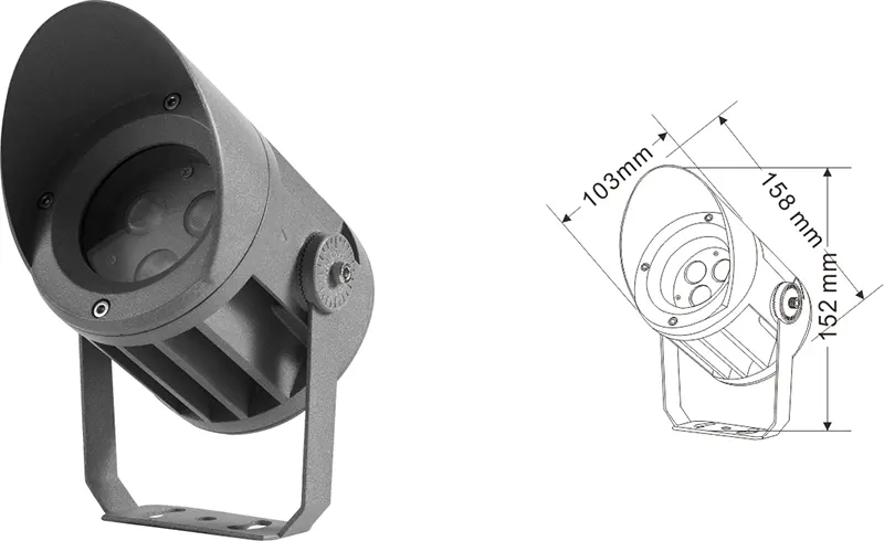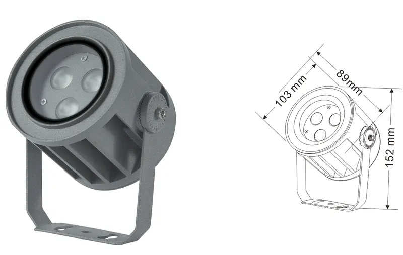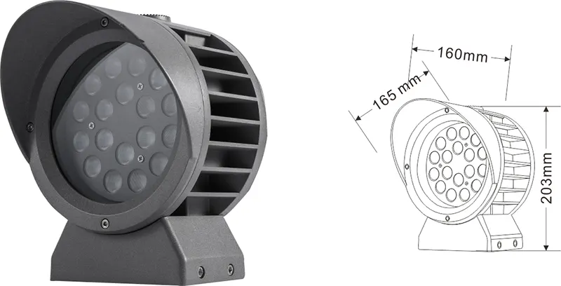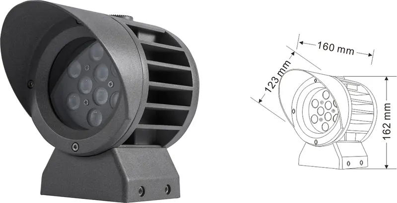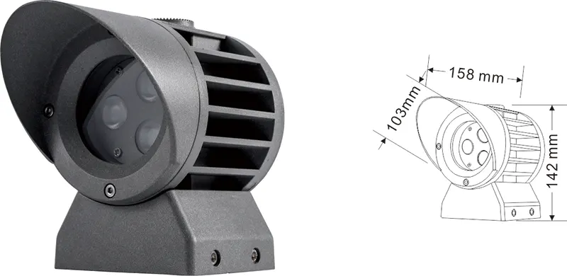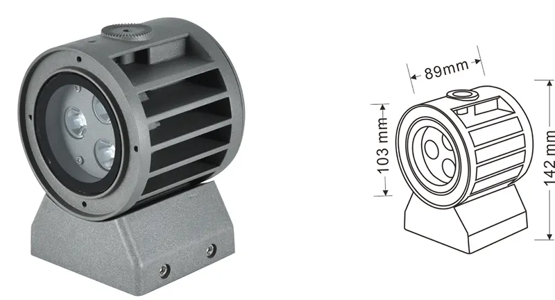 | LED fasado projekcijos lemputė | Con-tgd02-1 | Φ103*89*H152mm | 3-10W | Medžiaga: aliuminis+grūdintas stiklas Laikiklio tipas: reguliuojamas IP: IP67 Spalvos temperatūra pasirenkama: 3000K/4000K/6500K RGB / DMX512 RGBW / DMX512 Įprasta pilka, pritaikoma suderinti pastato fasado spalvą |