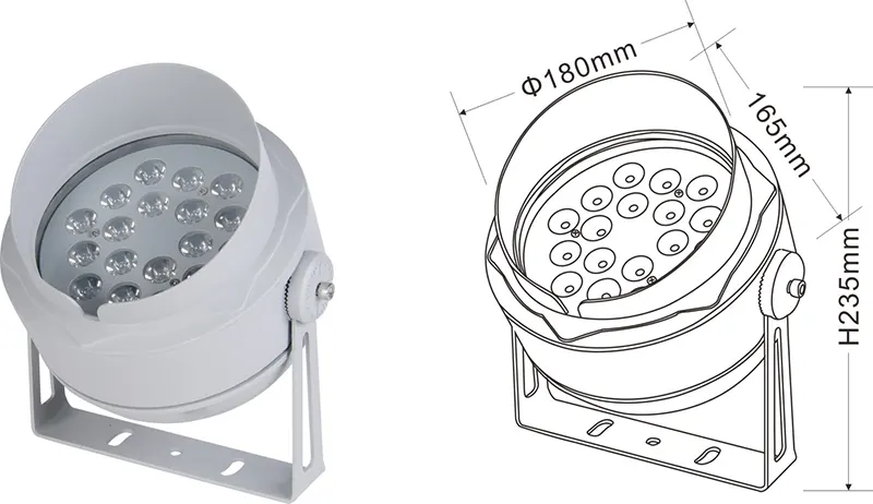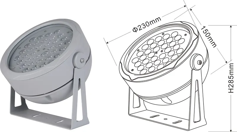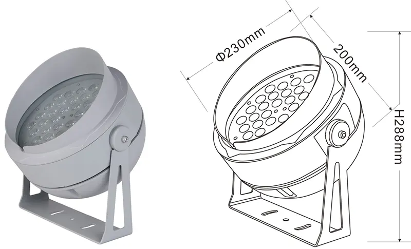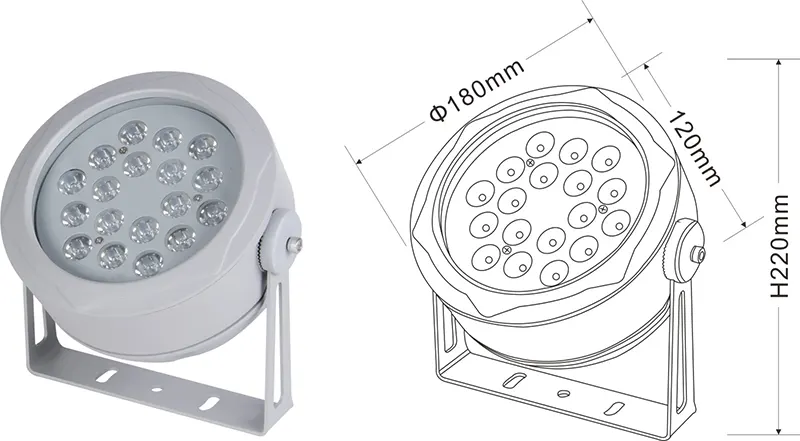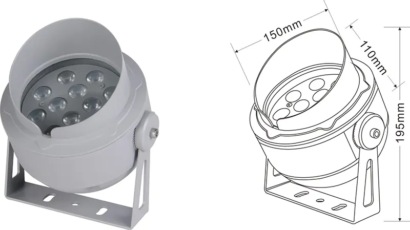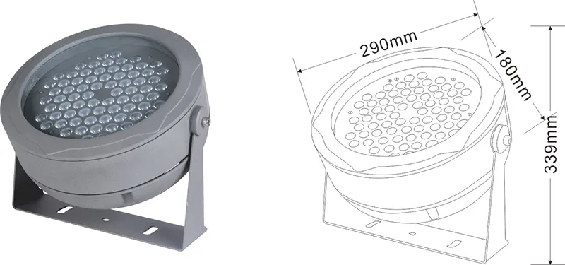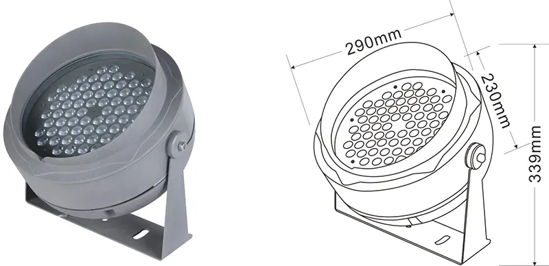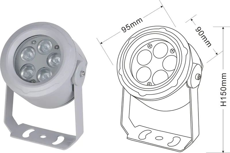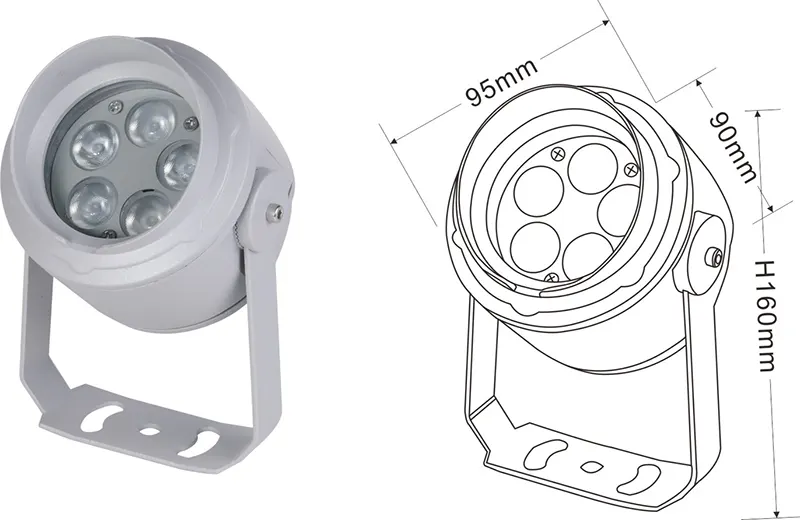 | LED prožektorius | Con-tgd09-1 | Φ95*90*H150mm | 5*2W | Medžiaga: aliuminis+grūdintas stiklas Laikiklio tipas: reguliuojamas IP: IP67 Spalvos temperatūra pasirenkama: 3000K/4000K/6500K RGB / DMX512 RGBW / DMX512 Įprasta pilka, pritaikoma suderinti pastato fasado spalvą |