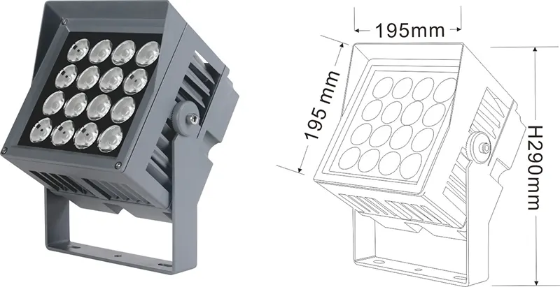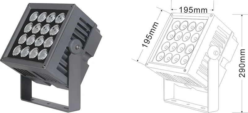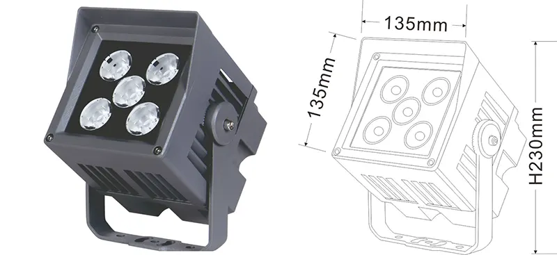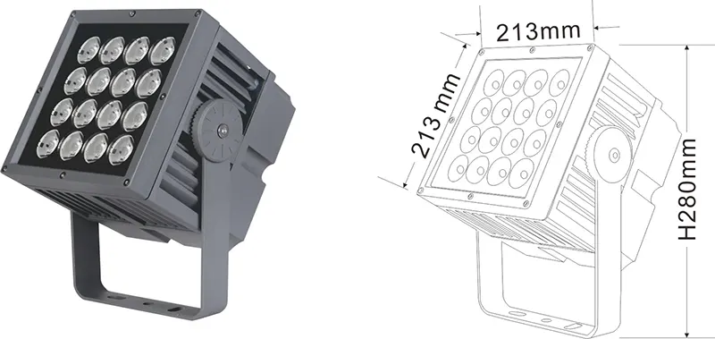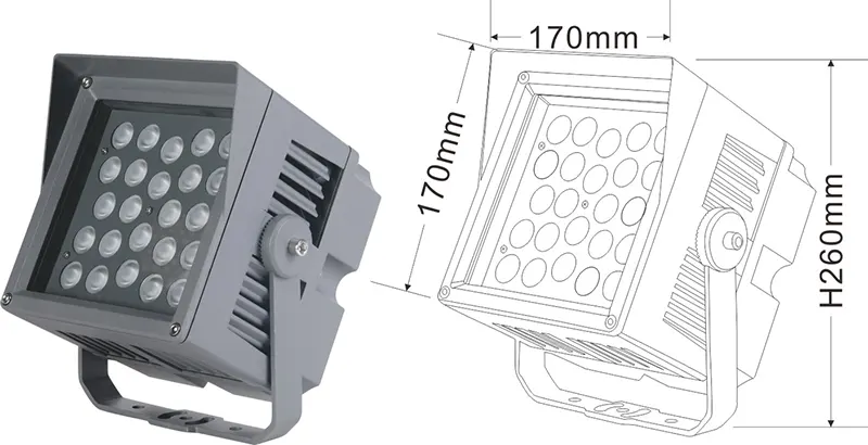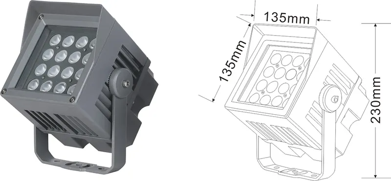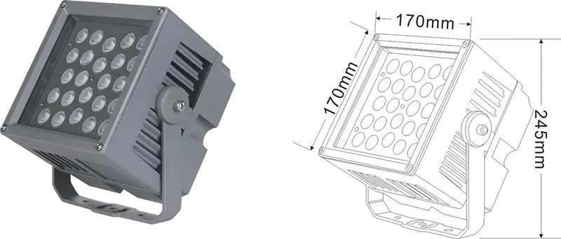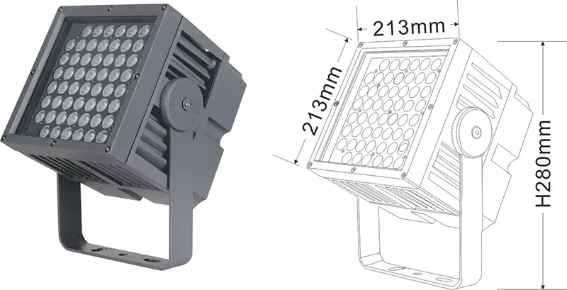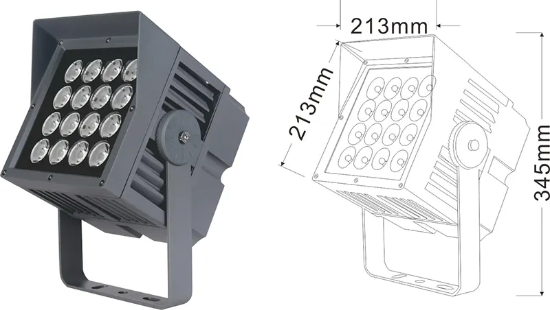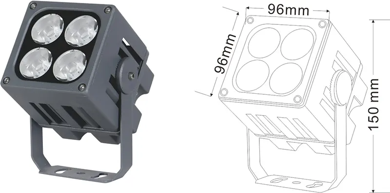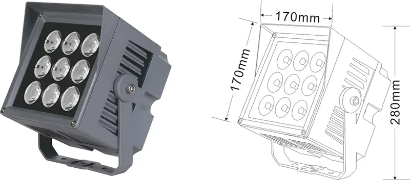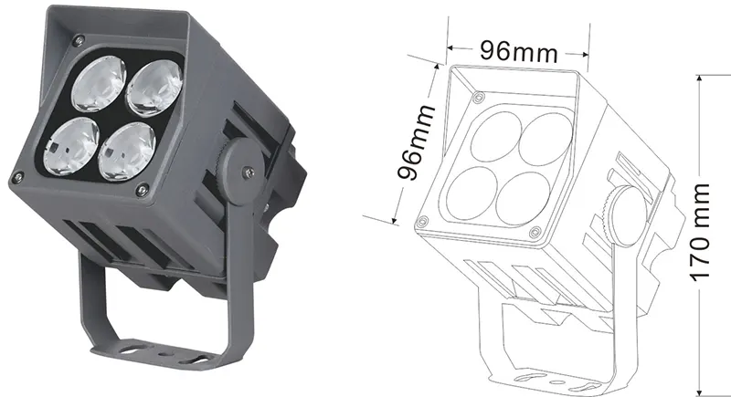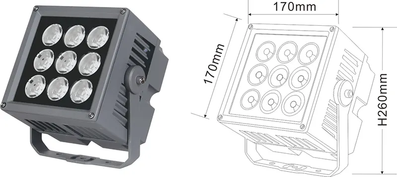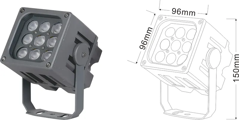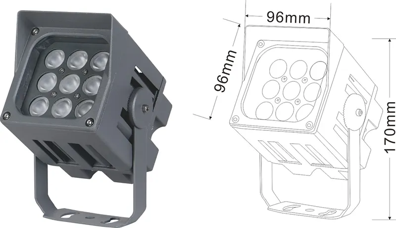 | LED kraštovaizdžio projektorius | Con-tgd06-1 | 96*96*150 mm | 9*2W | Medžiaga: aliuminis+grūdintas stiklas Laikiklio tipas: reguliuojamas IP: IP67 Spalvos temperatūra pasirenkama: 3000K/4000K/6500K RGB / DMX512 RGBW / DMX512 pilka, pritaikoma suderinti pastatą fasado spalva |